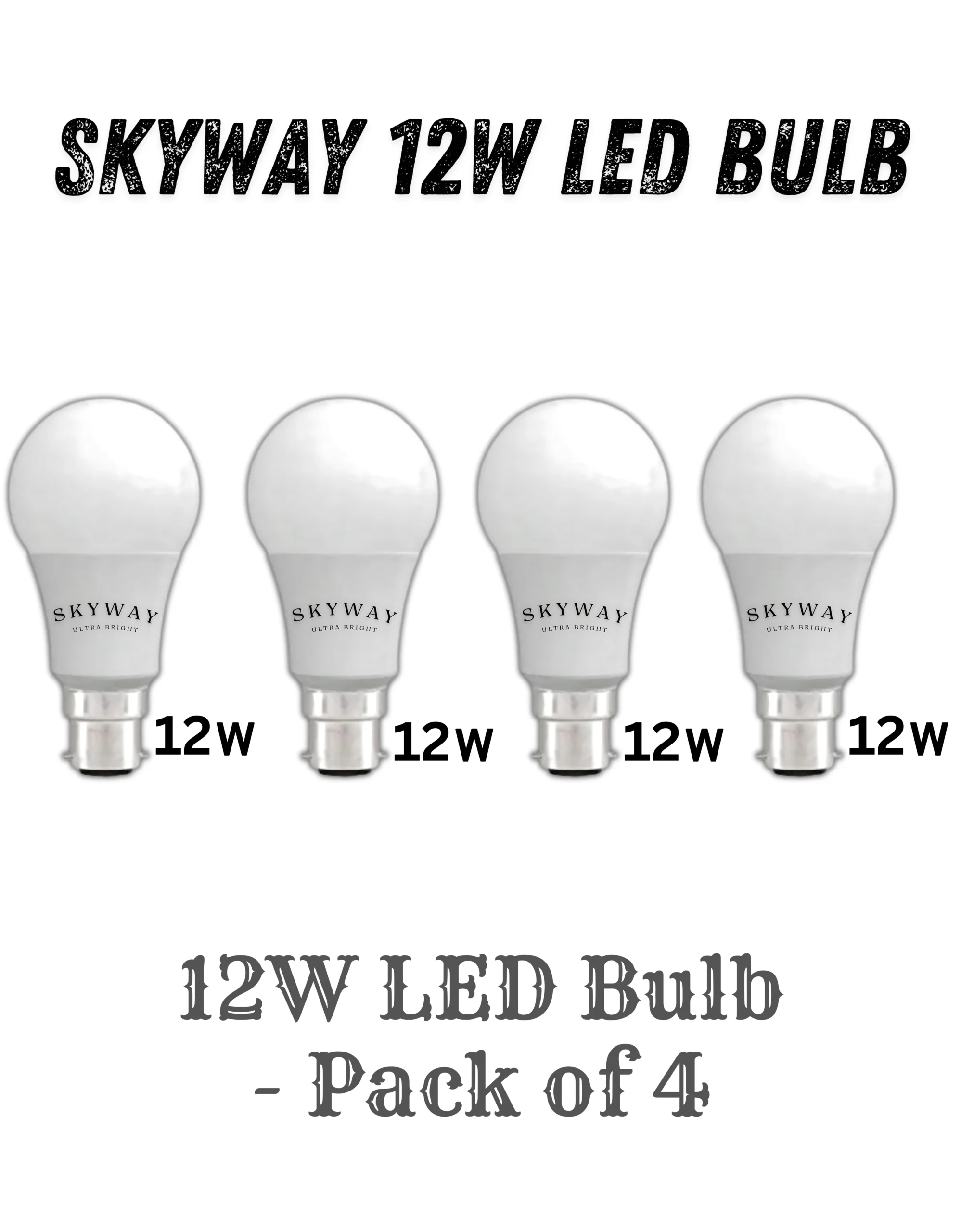 12W LED Bulb,LED Bulb Pack of 4,High Brightness LED,Energy Saving Light Bulbs,Best LED Bulbs India,Skyway LED 12W