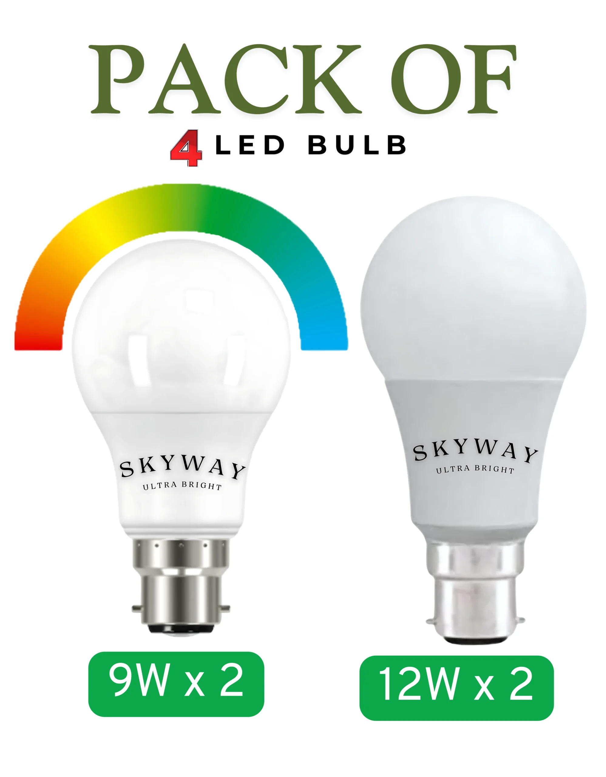 ✔️ Combo Includes: 2 x 9W LED Bulbs + 2 x 12W LED Bulbs