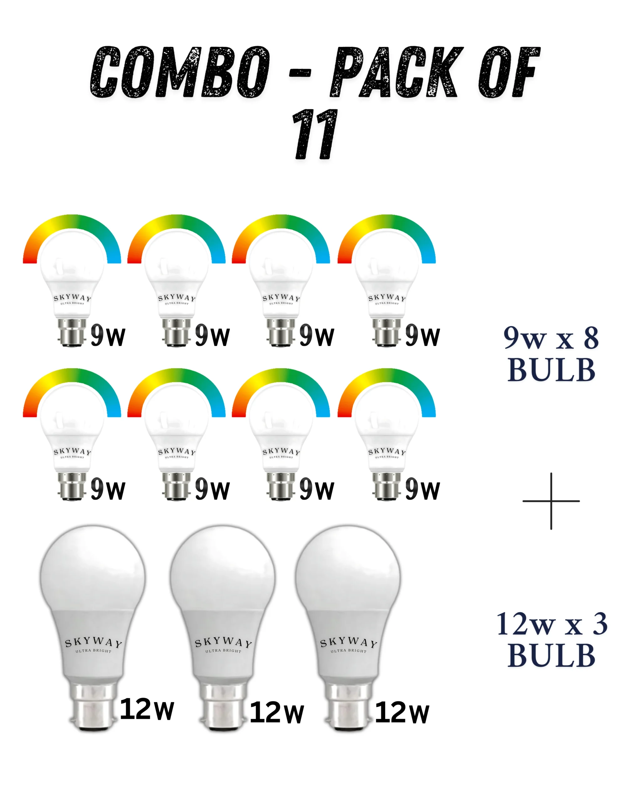 ✔️ Combo Includes: 8 x 9W + 3 x 12W LED Bulbs